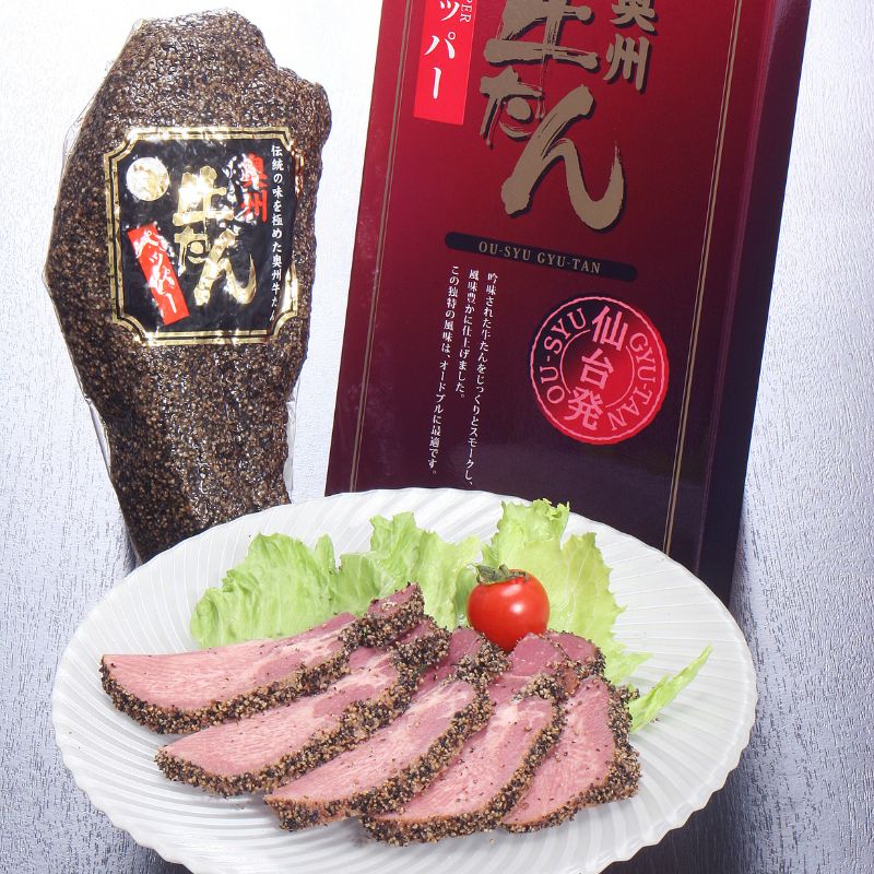 | 原材料表記 | 牛たん、乳清たん白、香辛料、食塩、ブドウ糖、砂糖 / 調味料(無機塩等)、酢酸ナトリウム、リン酸塩(Na)、グリシン、酸化防止剤(ビタミンC)、グリセリン脂肪酸エステル、発色剤(亜硝酸Na)、(一部に乳成分・牛肉を含む) |